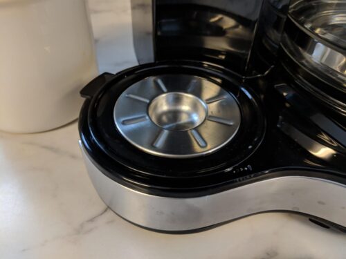 The full carafe side is much like any basic drip-coffee maker. There’s a small reservoir that holds enough water to brew a full pot of coffee. There’s a flip lid and a basket for coffee grounds. You can use paper filters or buy a separate metallic, re-usable mesh filter that fits inside this basket. I like these baskets as it’s less wasteful than using paper filters daily and I don’t have to remember to constantly purchase filters. I’ve used the same mesh filter for over 7 years now. It doesn’t filter as finely as paper filters do and the last sip of coffee contains a small amount of grit / sediment but this seems normal to me now. If someone doesn’t like this idea than I would warn them not to drink the last sip. It’s pretty easy to avoid.