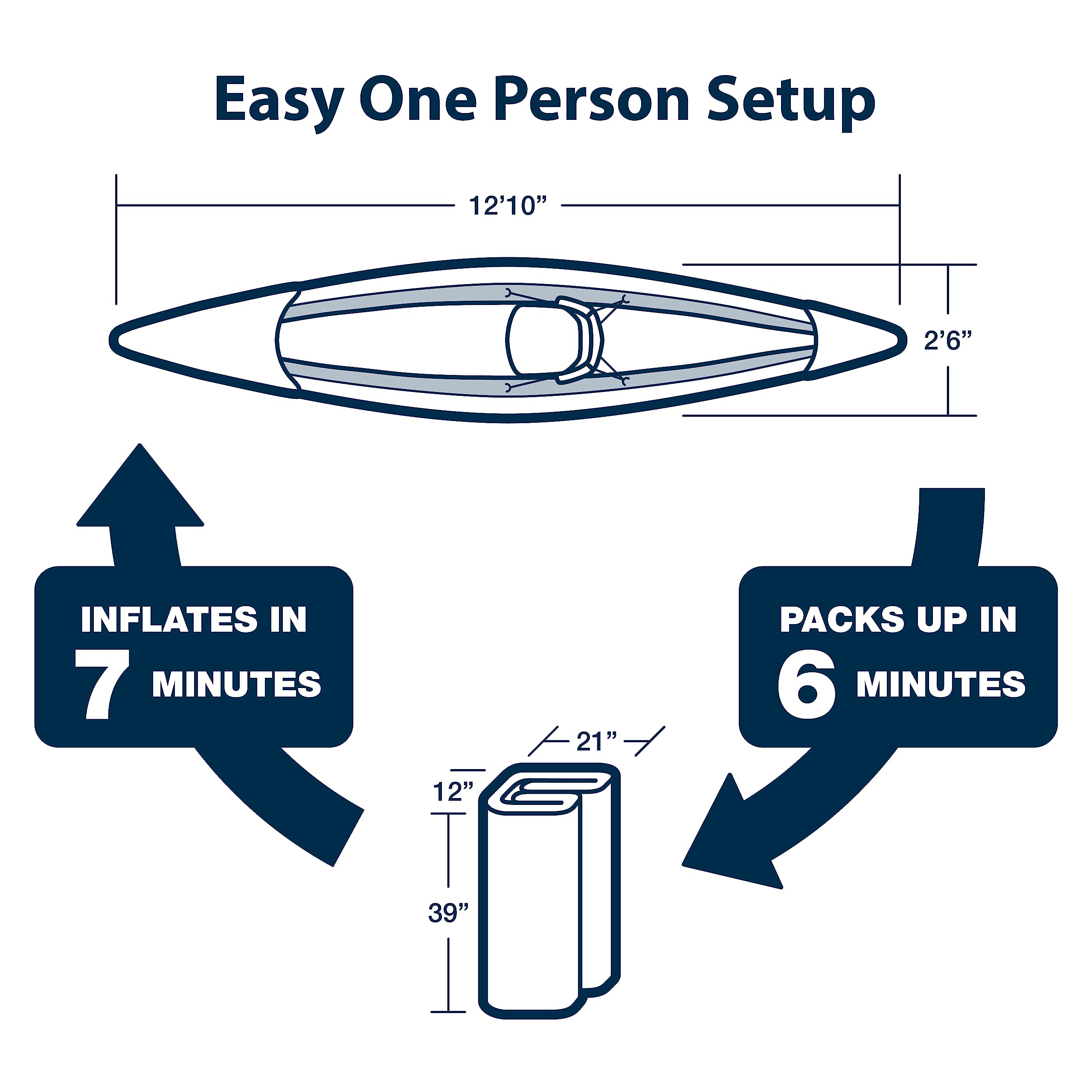 - Lightweight & Portable: At only 35 lbs (hull weight) and packing into a backpack, the 393RL is half the weight of most rigid kayaks. Inflates fully in under 7 minutes with the included pump.